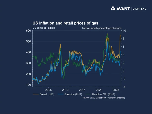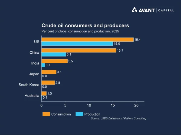 Oil prices have surged, but headline benchmarks have understated the severity of the shock. While Brent futures have hovered around $US100 a barrel, prices for physical crude have surged far higher. Dated Brent, which reflects actual cargoes for delivery, has traded well above $US130 a barrel, with some shipments delivered to Asia at $US150–170 a barrel once shipping costs are included3. This unprecedented gap reflects extreme scarcity in physical markets rather than speculative excess. Refiners have been forced to pay almost any price to secure barrels, squeezing margins and reducing output of fuels such as diesel and jet fuel. The result is a global supply chain under strain not just from cost inflation, but from an inability to access sufficient volumes at any price.