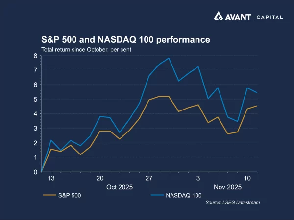 The broader S&P 500 posted 16.8% earnings growth, with 83% of companies beating forecasts. Revenue growth was more muted, with the technology sector and the broader index delivering 1.8% and 2.3% growth respectively. Margin expansion was the primary driver of profit growth. Despite these strong results, the NASDAQ 100 and S&P 500 have posted more modest gains since third-quarter reporting season began, as investors reassess valuations and the sustainability of AI-related spending.