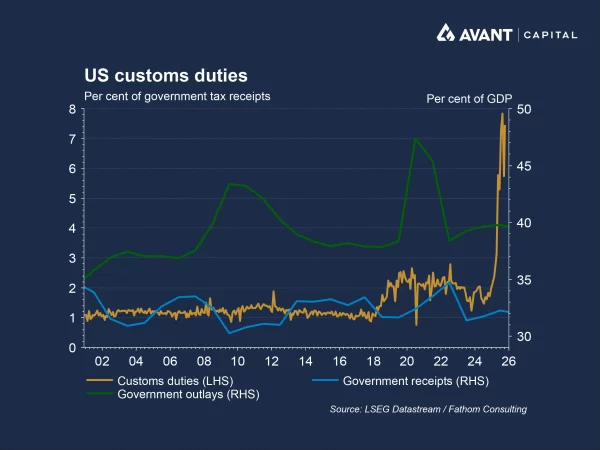 US federal government tariff revenues, meanwhile, have surged in 2025, providing a modest fiscal offset to widening US budget deficits, helping calm some investors’ concerns about debt sustainability.