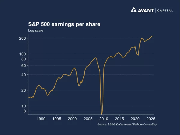 Several factors explain the resilience. Companies have largely chosen to protect market share rather than pass on full tariff costs, with Citigroup estimating consumers have borne only 30–40% of tariff costs so far6. Strong equity markets and tech profits have also helped: despite April’s market rout, the S&P 500 rebounded to record highs, and earnings growth across the broader Russell 3000 hit 11% in Q3, the fastest in four years7.