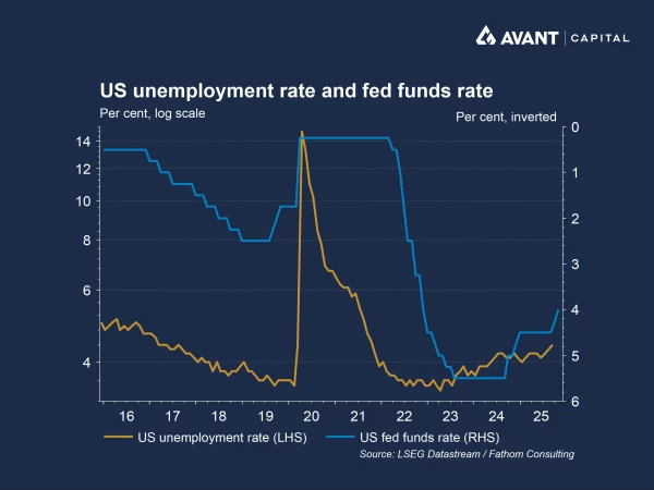 The Fed faces a delicate balancing act. Inflation remains sticky at around 2.7%, yet the labour market is cooling: unemployment ticked up to 4.4% in September, its highest since 2021, and manufacturing jobs have declined for three consecutive months8. In response, the Fed cut rates twice this year and may deliver a third 0.25% cut in December, despite hawkish concerns about reigniting inflation9.