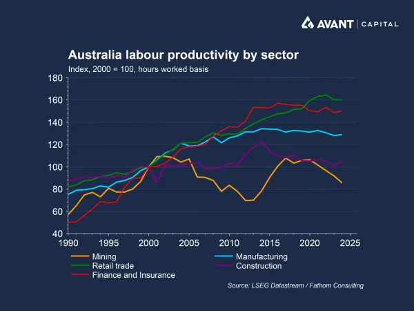 This is compounded by Australia’s weak productivity performance, which limits the economy’s ability to absorb wage increases without passing them on to consumers.
