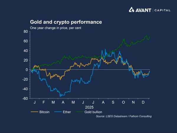 Alternatives offer mixed signals. Gold surged to record highs in 2025 as geopolitical uncertainty and fiscal concerns drove safe-haven demand. Crypto, by contrast, slumped late in the year as risk appetite faded. Both remain sentiment-driven, underscoring the need for caution.