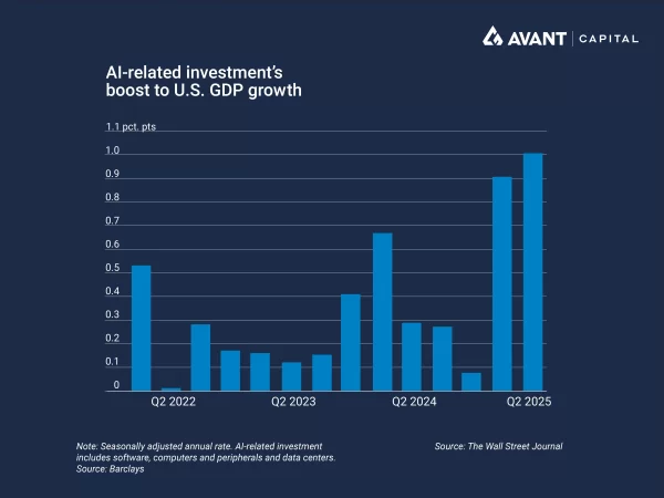 AI spending has become a pillar of US economic growth, contributing up to half of GDP growth in the first half of 2025 according to Barclays12, underscoring the scale of investment by America’s tech giants.